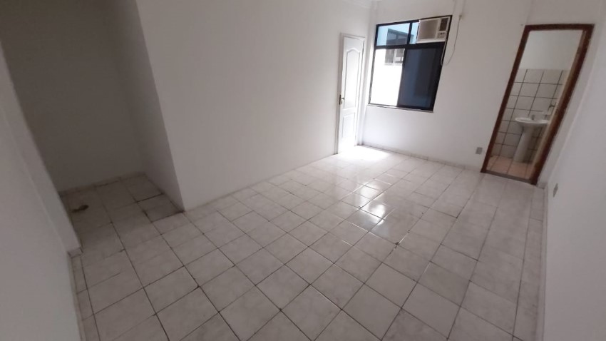 Recepção, sala ampla e banheiro social, totalizando uma área de 30,82m².