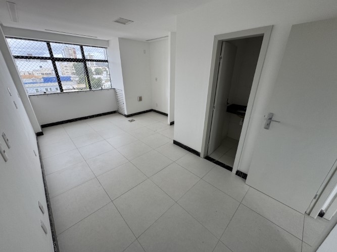 A sala é ampla e bem distribuída, composta por recepção com janela, minicopa, banheiro social, sala de atendimento clínico também com janela e área técnica. Possui ainda parede lateral com tubulações hidráulicas, já preparada para instalação de pias, além de contar com 1 vaga de garagem.