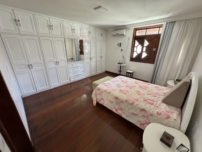 No primeiro andar, o imóvel conta com um hall de entrada espaçoso, varanda e 02 suítes, sendo uma delas com closet e varanda privativa, e a outra suite com varanda, oferecendo conforto e privacidade aos moradores.