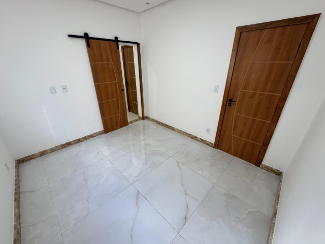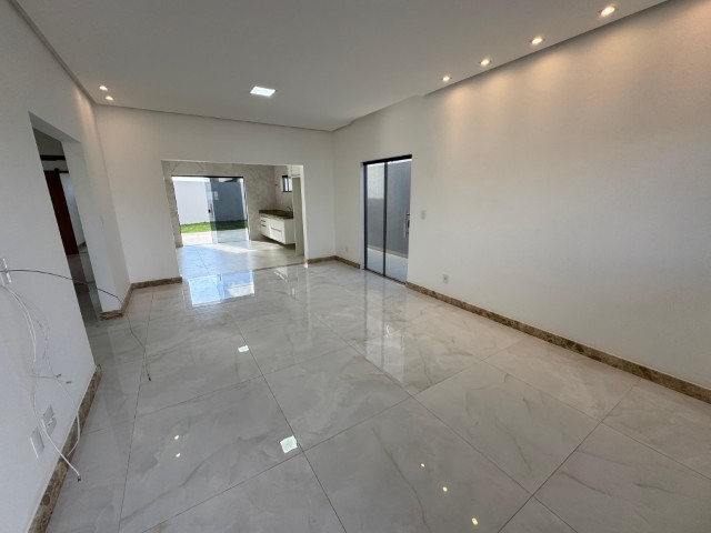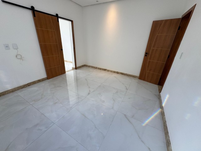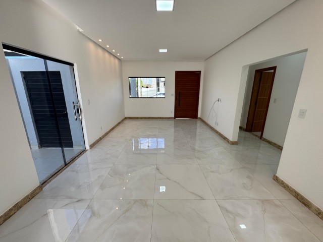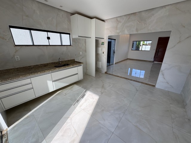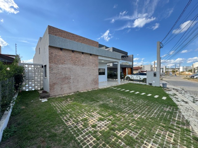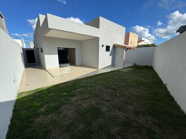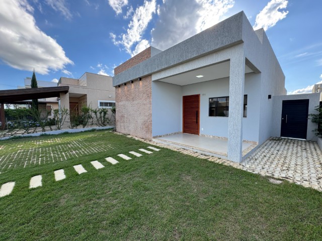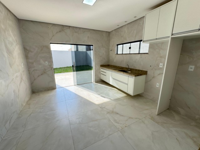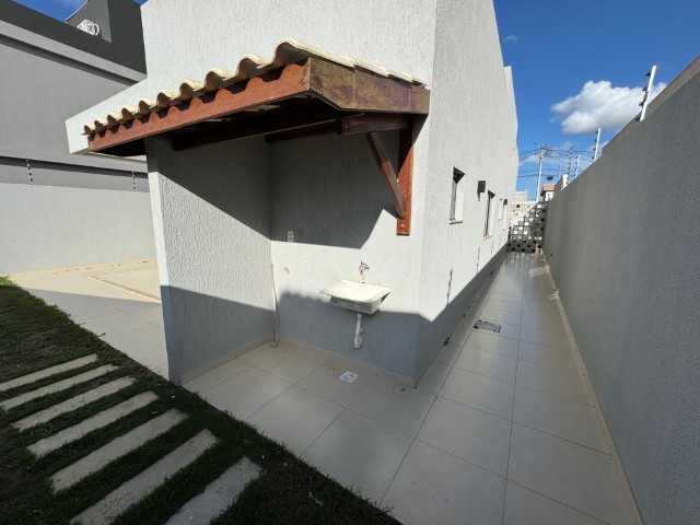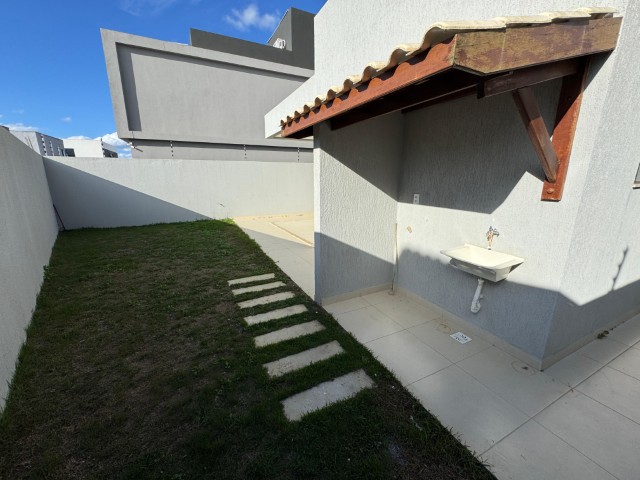 O imóvel dispõe de sala ampla, com porta lateral que dá acesso ao corredor externo, 3 quartos, sendo todos suítes (com armários nos banheiros, sendo uma delas com banheiro conversível para uso como banheiro social), cozinha (equipada com armários planejados), área externa com quintal e área de serviço, vaga de garagem para 2 veículos e varanda na parte frontal da casa.