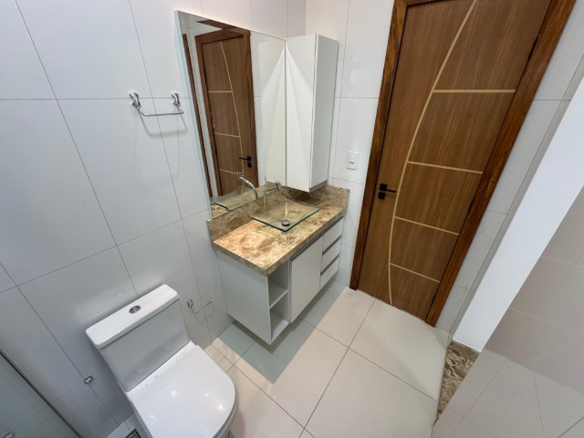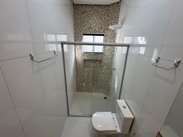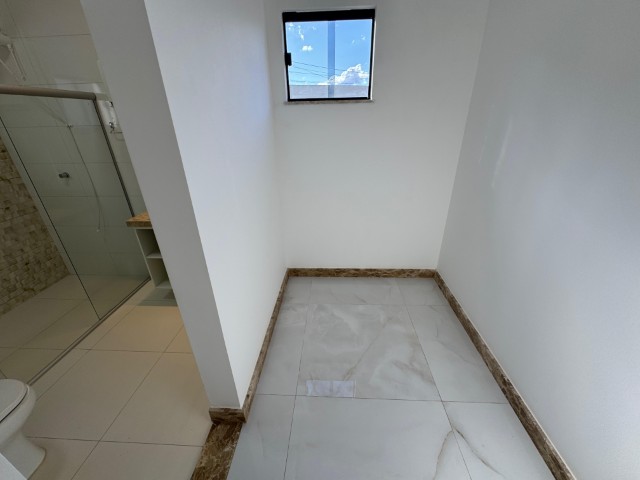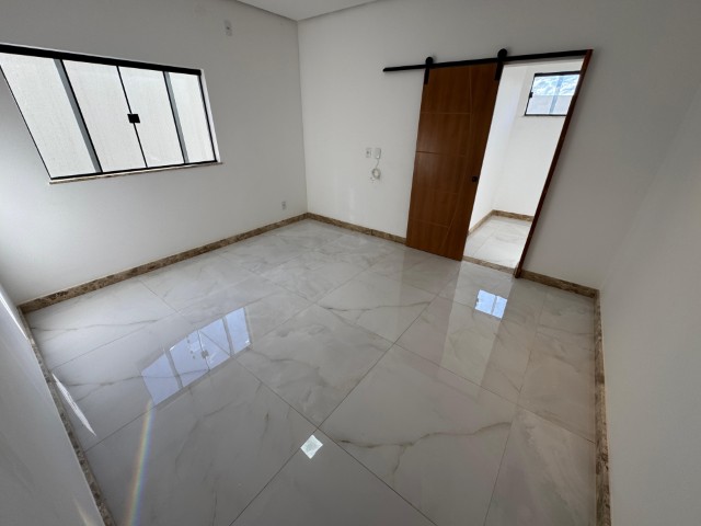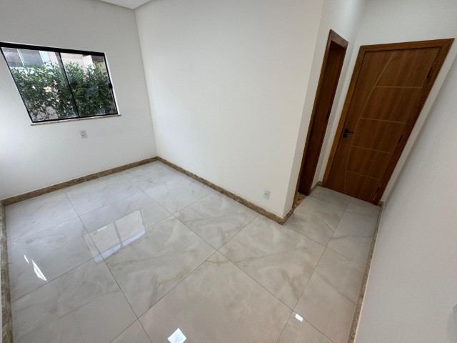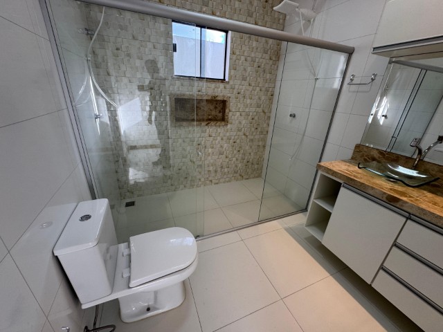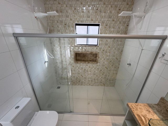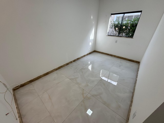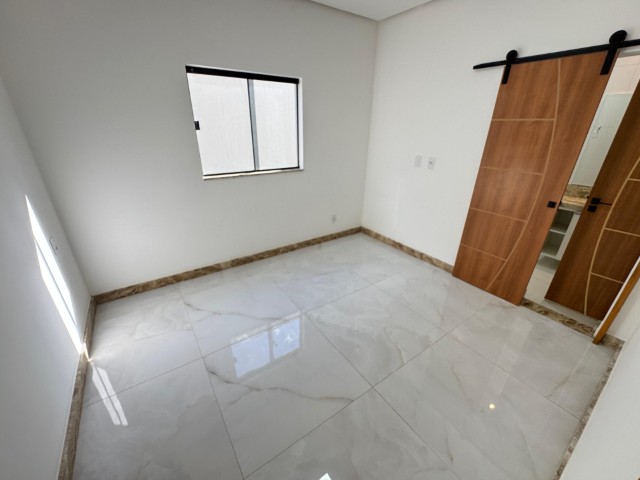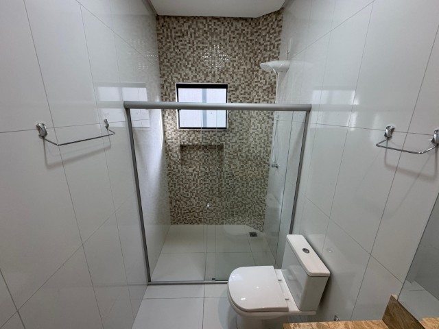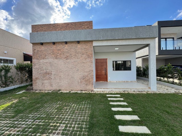 O imóvel dispõe de sala ampla, com porta lateral que dá acesso ao corredor externo, 3 quartos, sendo todos suítes (com armários nos banheiros, sendo uma delas com banheiro conversível para uso como banheiro social), cozinha (equipada com armários planejados), área externa com quintal e área de serviço, vaga de garagem para 2 veículos e varanda na parte frontal da casa.