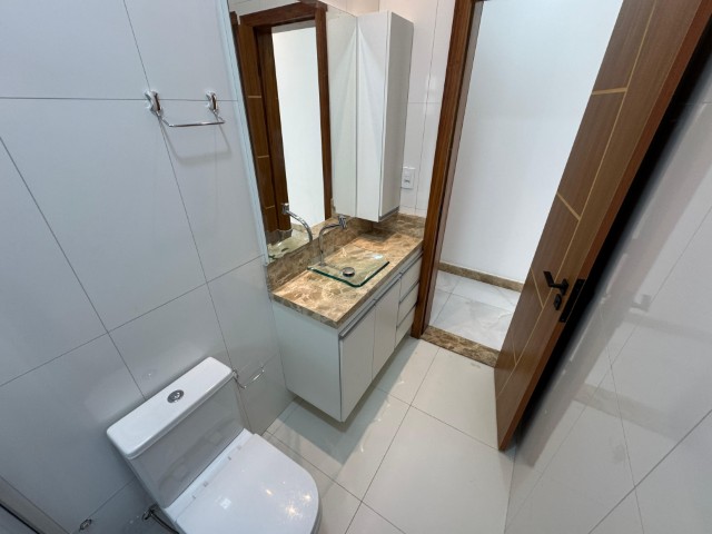 O condomínio oferece portaria 24 horas, piscina, área gourmet com churrasqueira, salão de festas, sala de jogos, academia, quadra poliesportiva, quadra de areia e parque infantil.
