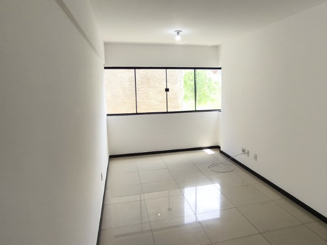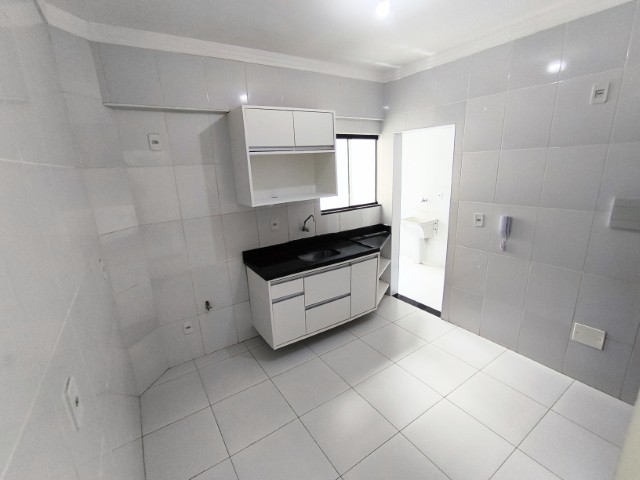 O apartamento, situado no segundo andar, dispõe de sala para 02 ambientes, 03 quartos, sendo 01 suíte, banheiro social, cozinha (com armários), área de serviço, banheiro de serviço e 01 vaga de garagem coberta.