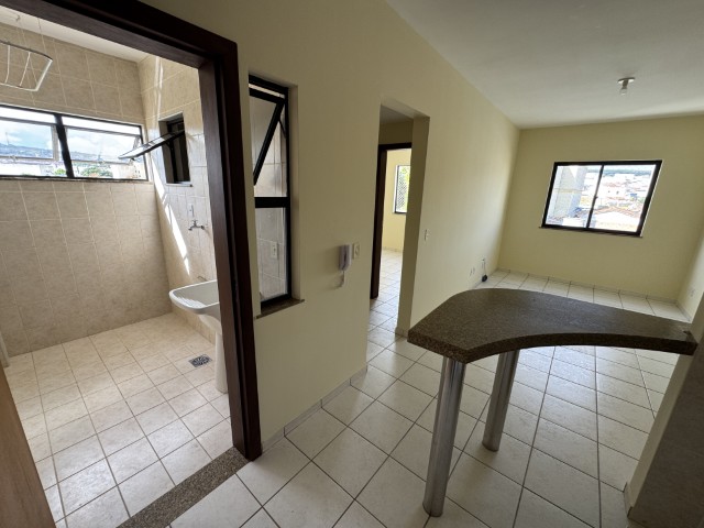 O imóvel dispõe de sala ampla para um ambiente, 1 quarto, banheiro social, cozinha tradicional com armários, área de serviço, dependência com banheiro e 1 vaga de garagem, oferecendo funcionalidade e boa distribuição dos espaços.