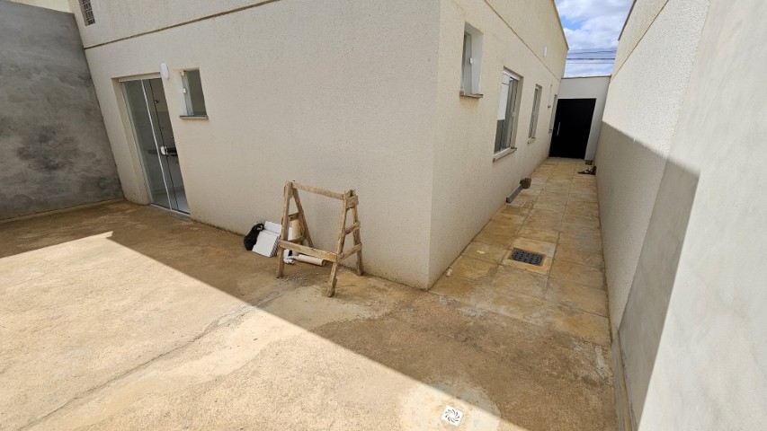 A casa dispõe de sala, 3 quartos, sendo 1 suíte, banheiro social, cozinha, além de quintal com área de serviço e 1 vaga de garagem, apresentando ambientes bem distribuídos e funcionais.