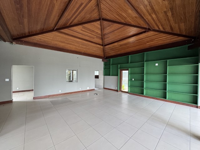 O espaço é composto por hall de entrada, salão/restaurante amplo, cozinha e área externa arborizada.