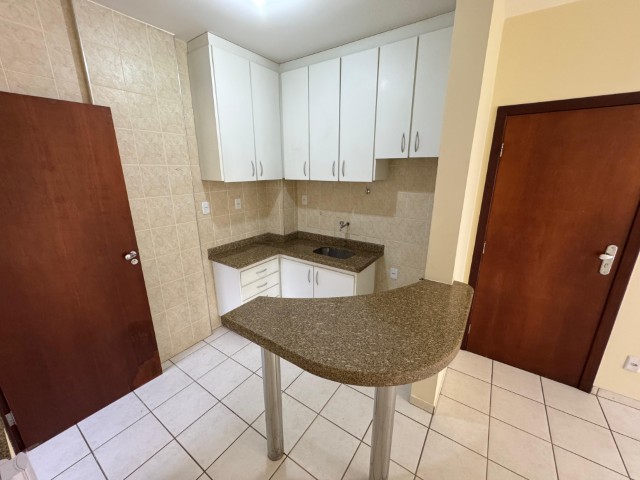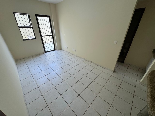 O apartamento esá no 1° andar do prédio e dispõe de sala  ( com rack e painel), 1 quarto( com guarda roupas, escrivaninha e painel), banheiro social, cozinha (com armários e mesa), área de serviço e 1 vaga de garagem, oferecendo funcionalidade e boa distribuição dos espaços.