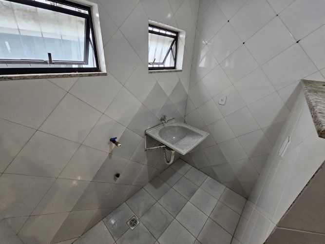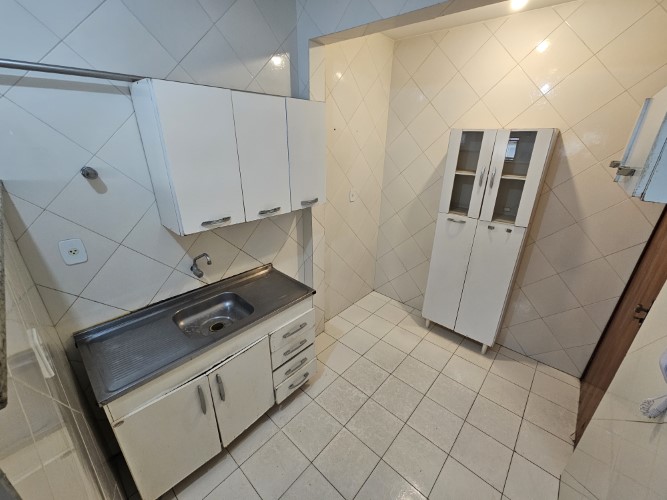 O imóvel dispõe de sala, 2 quartos, banheiro social (com armário), cozinha (com armários) e área de serviço, apresentando ambientes bem distribuídos e funcionais.