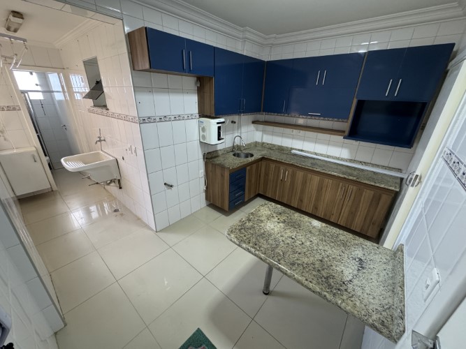 O apartamento dispõe de sala para 2 ambientes com janela ampla que garante excelente iluminação natural, 2 quartos, sendo 1 suíte (com armário no banheiro), home office ou pequeno quarto, banheiro social (com armário), cozinha (com armários planejados), área de serviço, banheiro de serviço e 2 vagas de garagem cobertas.