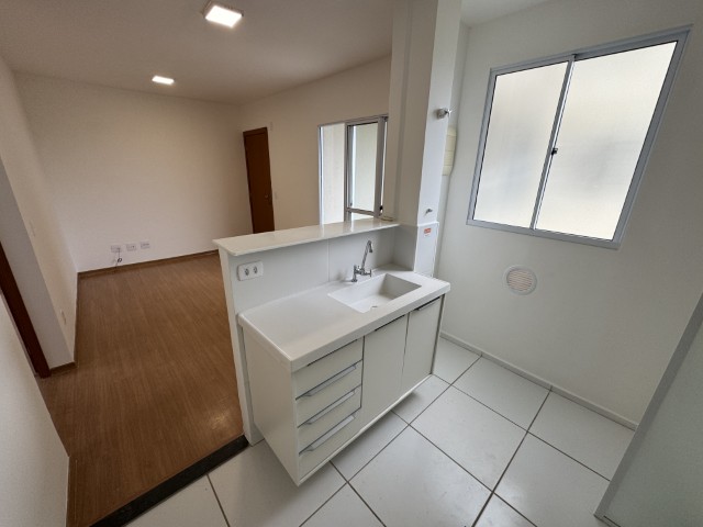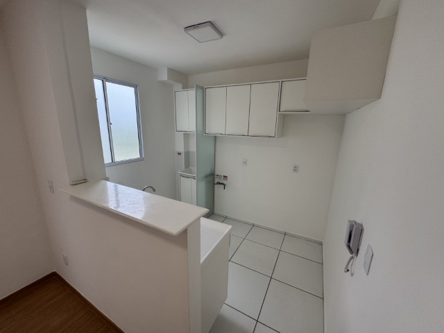 O apartamento está situado no 3° andar e dispõe de sala com acesso à varanda, 02 quartos, banheiro social com armário, cozinha americana (com armários planejados), área de serviço integrada e 01 vaga de garagem.