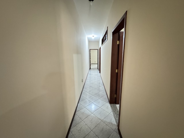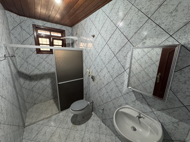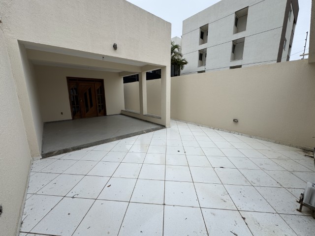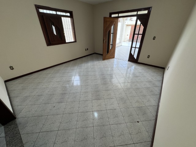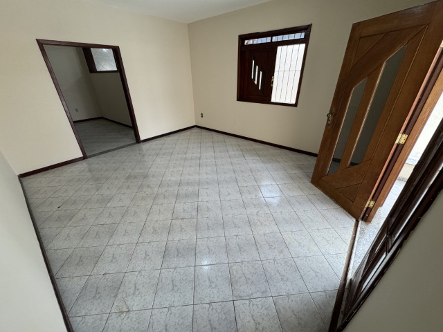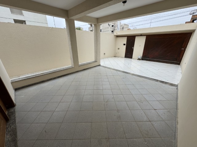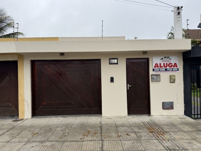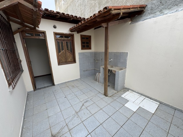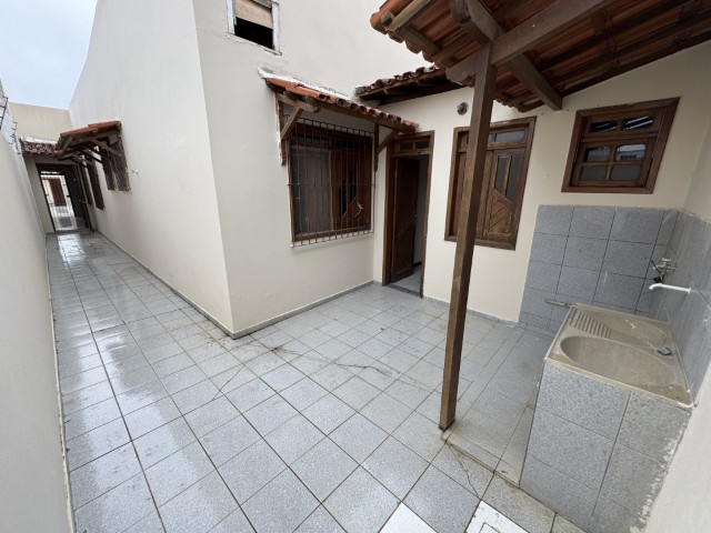 A residência dispõe de sala de estar, sala de jantar, 03 quartos, sendo 01 suíte, banheiro social, cozinha (com armário de pia), e quintal com área de serviço e dependência completa. Na parte frontal, o imóvel oferece 02 vagas de garagem, sendo 01 coberta.