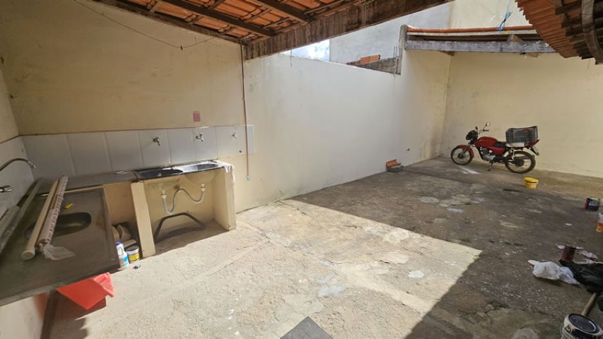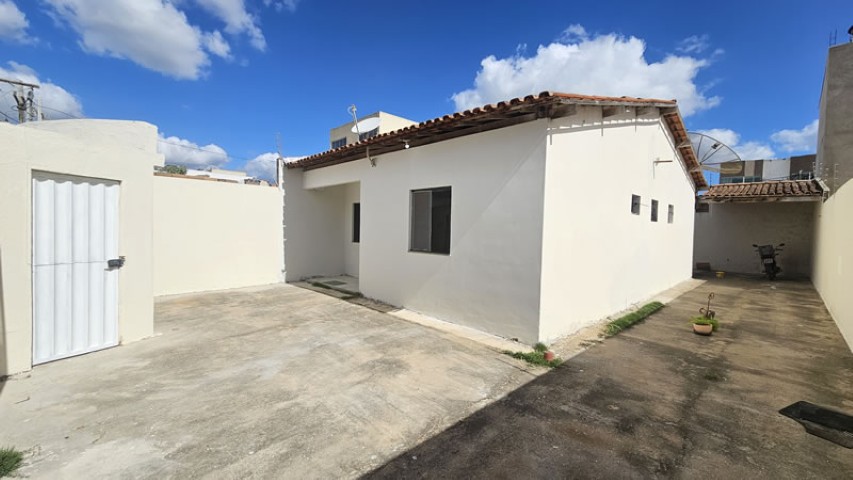 A residência dispõe de sala, 02 quartos, sendo 01 suíte, banheiro social, escritório, cozinha, quintal com área de serviço, e na área externa frontal o imóvel conta com 02 vagas de garagem.